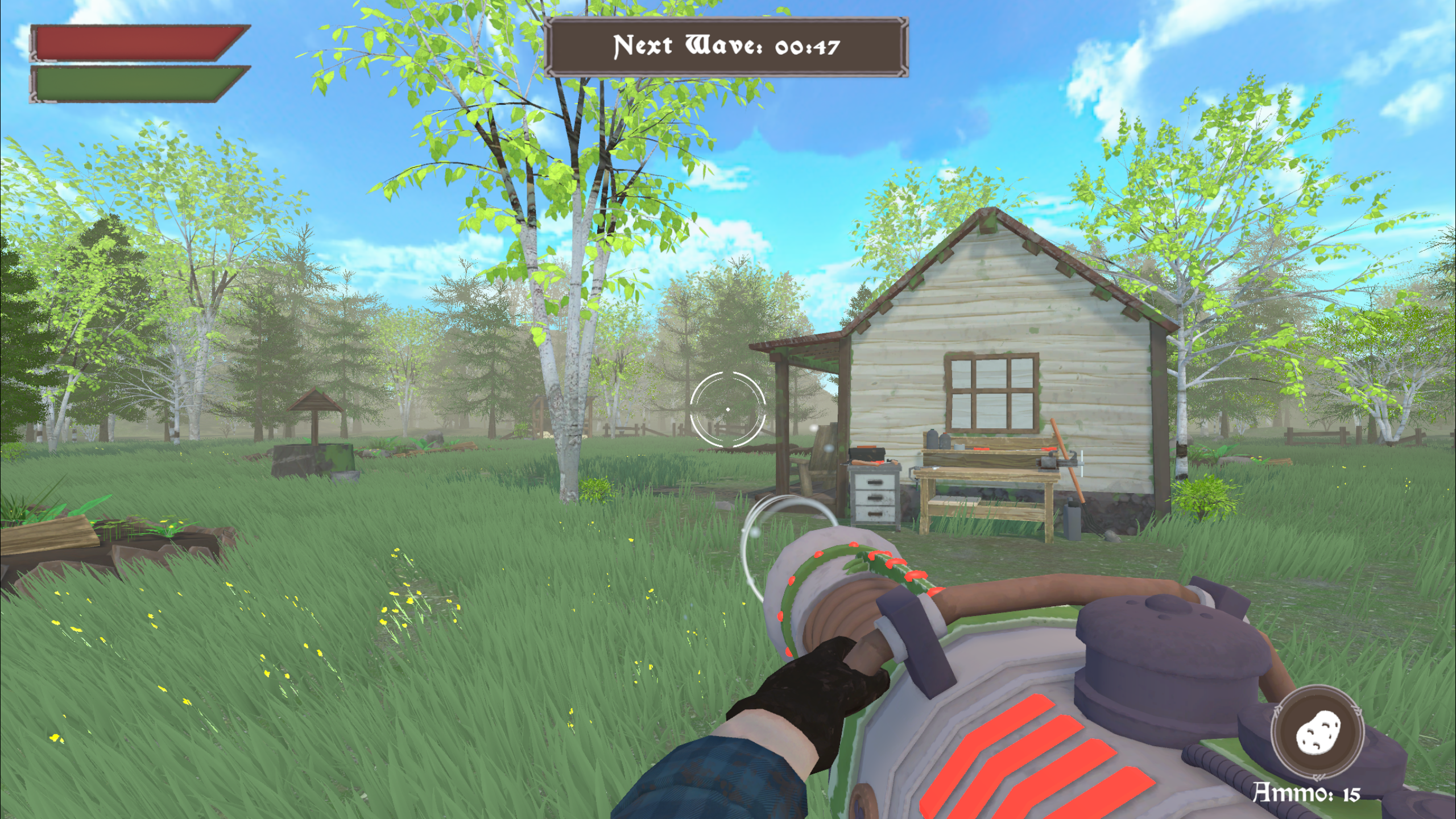 “Attack Of The Gnomes” is a survival-focused FPS built around a day and night cycle. Players use the daytime to grow crops (Potatoes, Pumpkins etc.) and once night falls, they shoot those crops out of a projectile launcher against waves of evil garden gnomes.